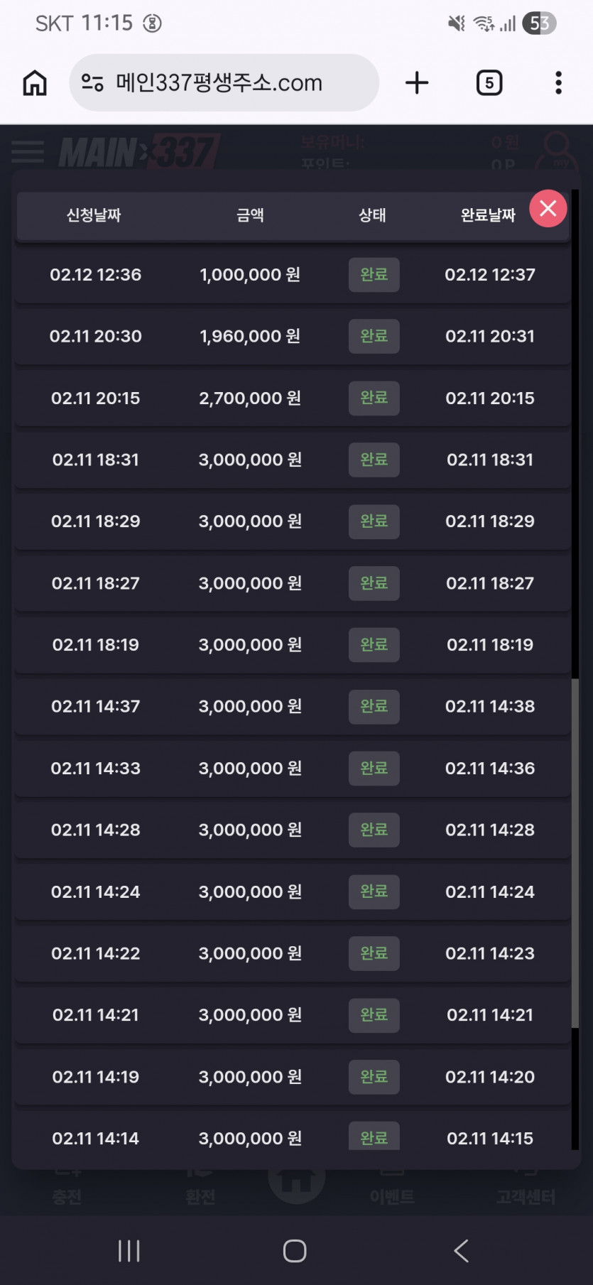 환전신청에 메인벳 비율이 제일 높긴하네요