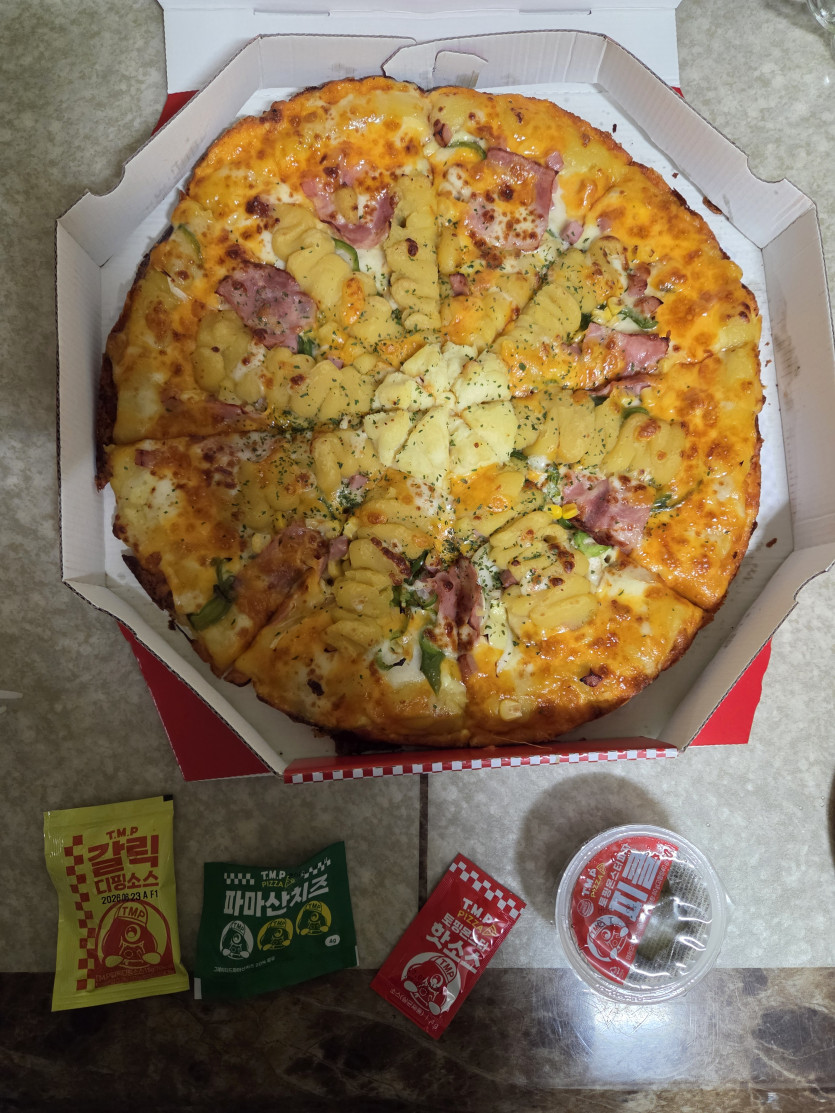오둥이콘 할매밥상 오둥이콘 0 8 2026-03-12 18:18:39 아버지가 치킨버거를 좋아하셔서 맘스터치를 자주먹다가 이번엔ㅈ피자로.. 배민 이런건 리뷰하는가 해서 사진찍어도 뭐라 안하는데 일반 밥상은 ㅜㅡ