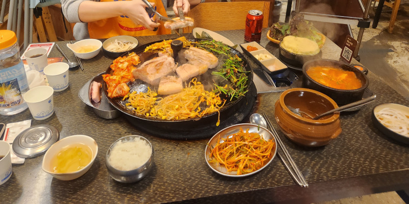고기 존나 두툼하데이! 오겹살이노? 으이!