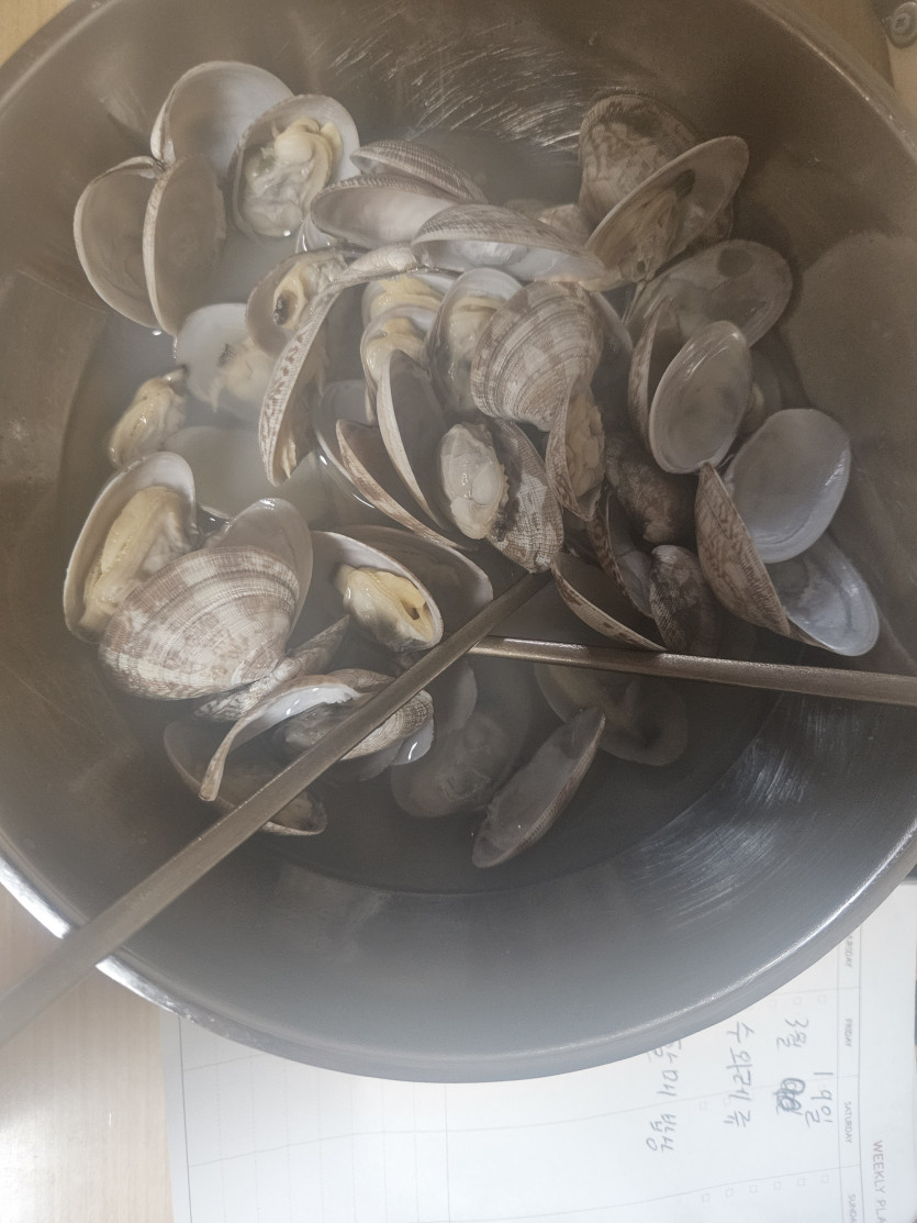 바지락국 끓였습니다 쇠주한잔하고 자야겠군요