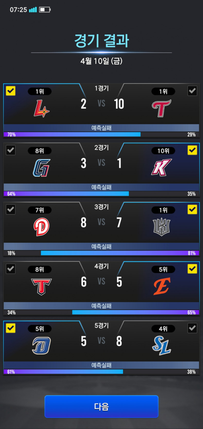 야구겜 어제 크보 예측 결과