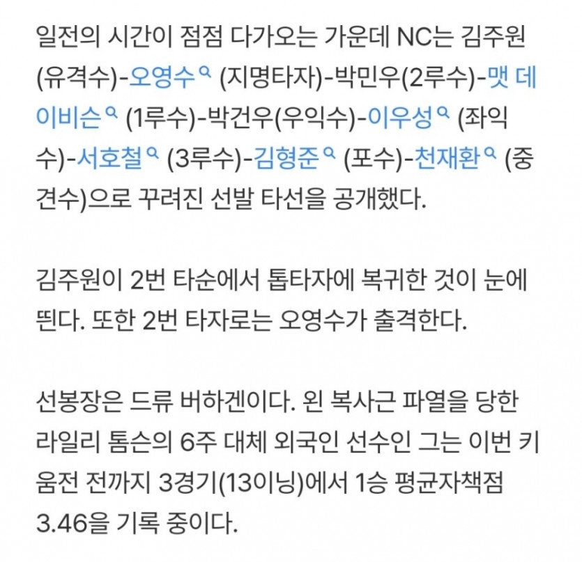엔씨 확정 라인업