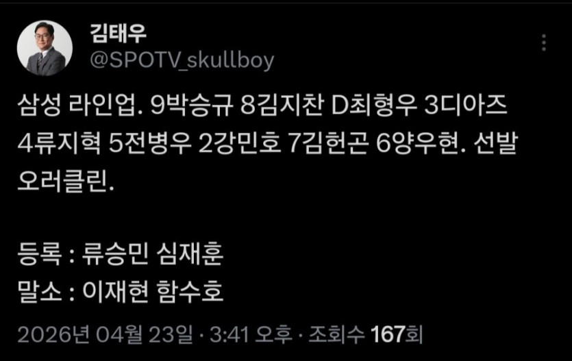 삼성 라인업 아까 잘못올려서 여기에