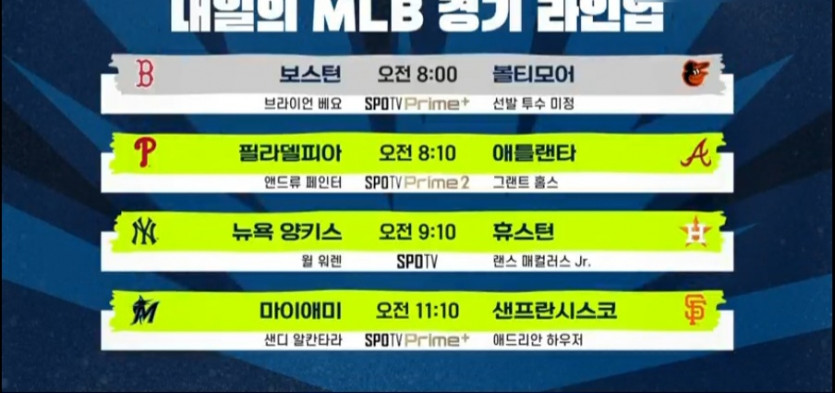 내일 믈브 주요경기