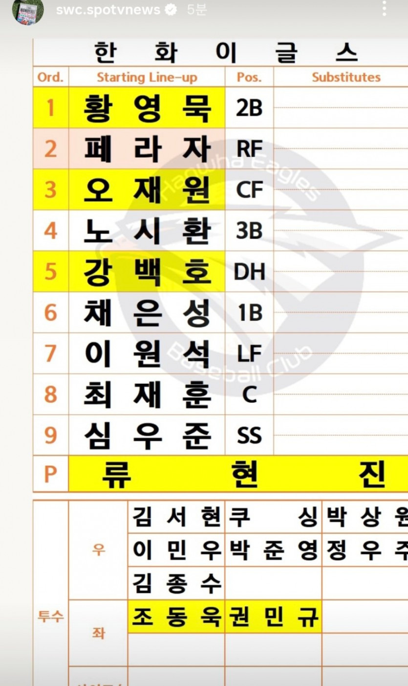 한화 확정 라인업 jpg