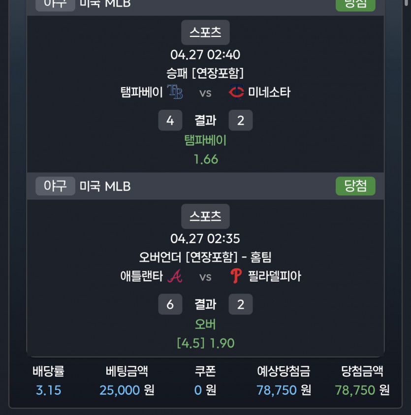 쇼미더벳 에슬레틱스vs텍사스 후기