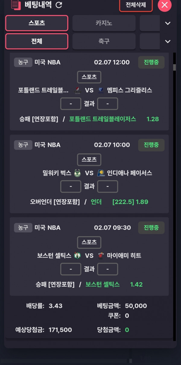 보스턴 승, 밀워키 & 인디애나 222.5 언더, 포틀랜드 승