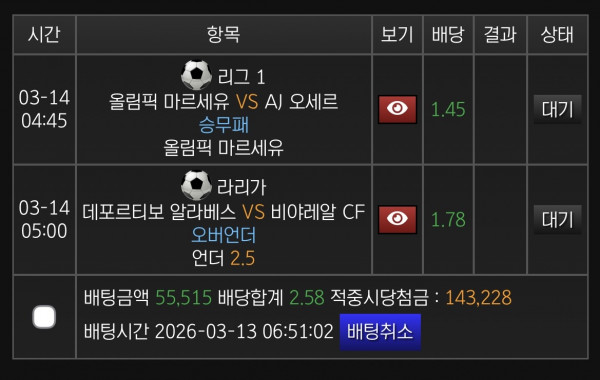 마르세유승은 확실히 좋아보이는데 저 언더가 좀 위험할듯 한쪽은강등버프, 한쪽은 챔스티켓 때문에 존나게 치고받을 가능성있어서.. 그리고 요즘 라리가가 왜이렇게 뜬금오버가많은지..