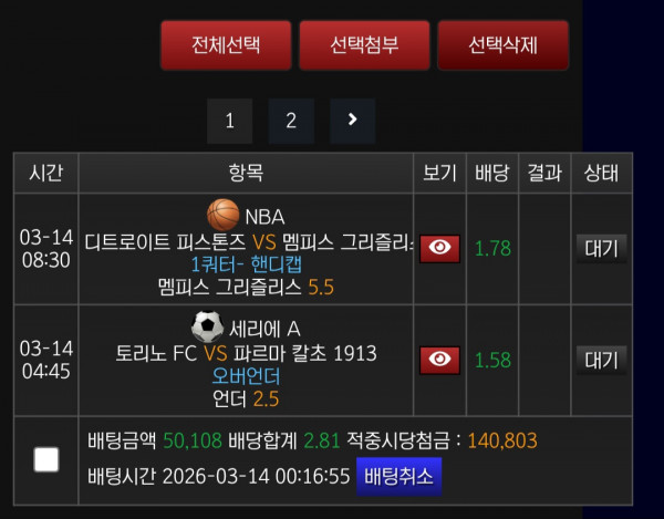 쇼미벳 진행경기 1