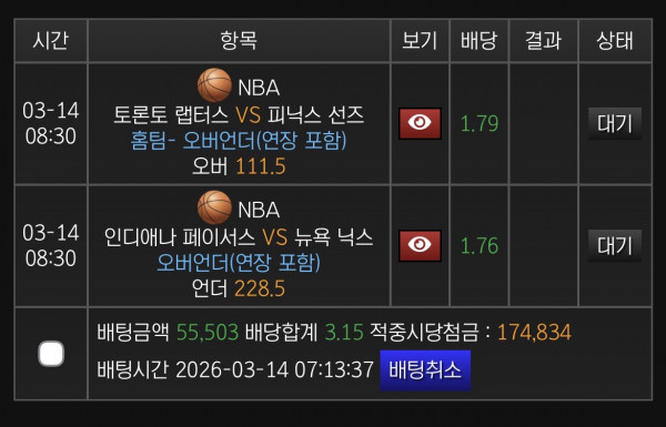 토론토 홈득 111.5 옵 닉스 228.5 언더