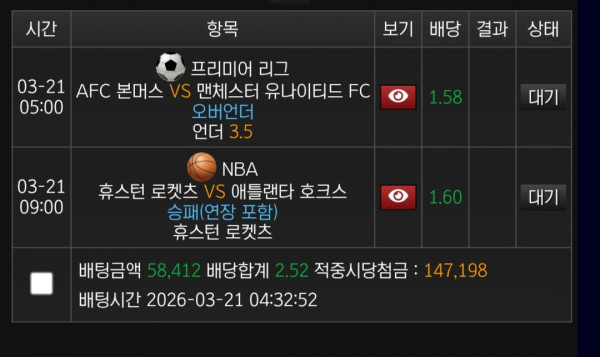 휴스턴 승 + 맨유 3.5언더